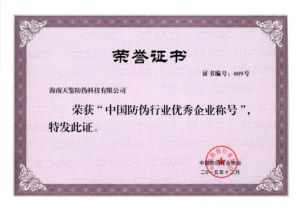 海南天鑒專注于產品防偽與溯源領域17年,擁有完整的自主知識產權和完善的自主研發、生產及產品銷售體系,擁有一支充滿活力、富有創新精神的技術隊伍,核心技術人員擁有豐富的工作經驗,為中國防偽事業提供堅實后盾,在中國防偽行業處于核心領導地位、領先地位。防偽溯源技術得到了廣泛的認可,營銷服務網絡遍及全國各地。