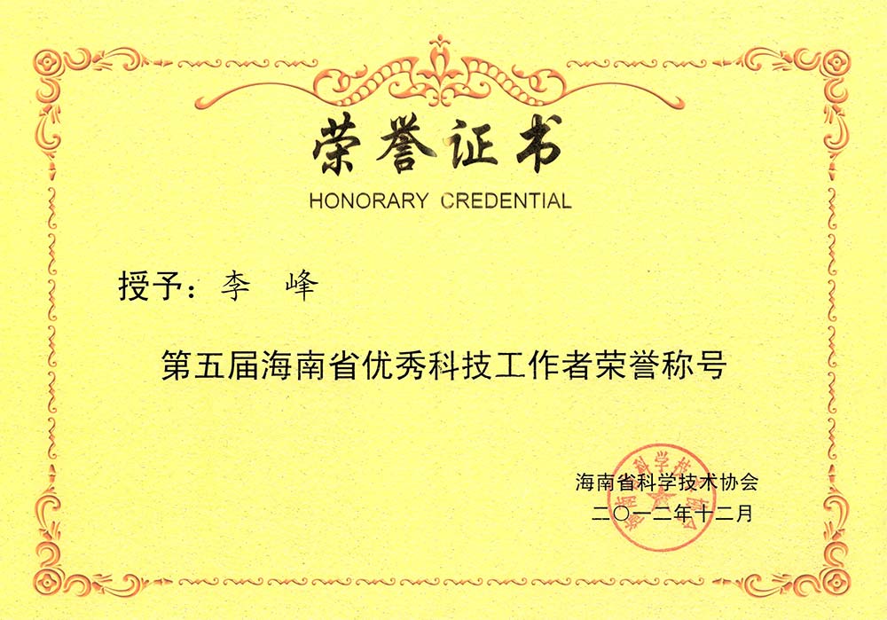 ? 多次獲得海南省優秀科技工作者、海口市先進個人