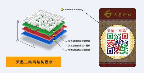 天鑒科技的專利產(chǎn)品——結(jié)構(gòu)三維碼以多層結(jié)構(gòu)顏色材料為載體,將防偽元素和信息集合隨機雕琢其上,使之不同部位呈現(xiàn)出顏色不同、深淺不同的結(jié)構(gòu)特征,為商品提供唯一、安全、可靠的入口,即使制造者自己也無法再造出一枚一模一樣的標簽,杜絕標簽被仿造,再通過AI 智能識別手段將這種工藝所形成的結(jié)構(gòu)組合特征識別出來,最終形成專屬于每一件產(chǎn)品“不可復(fù)制的臉”。助力商品實現(xiàn)支付安全,為數(shù)據(jù)的真實性和安全性提供進一步保障。